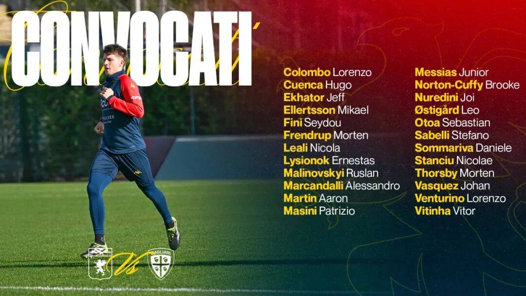 1月13日1:30,#意甲 联赛第二十轮,倒数第四的#热那亚 主场迎战排名第十五的#卡利亚里。